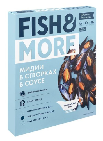 Мидии Fish&More в створках в сливочно-чесночном соусе 500г в/у Чили